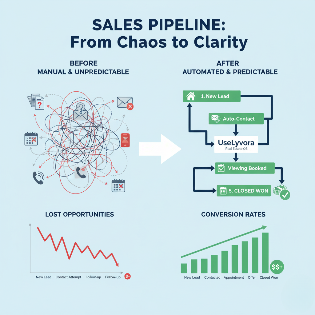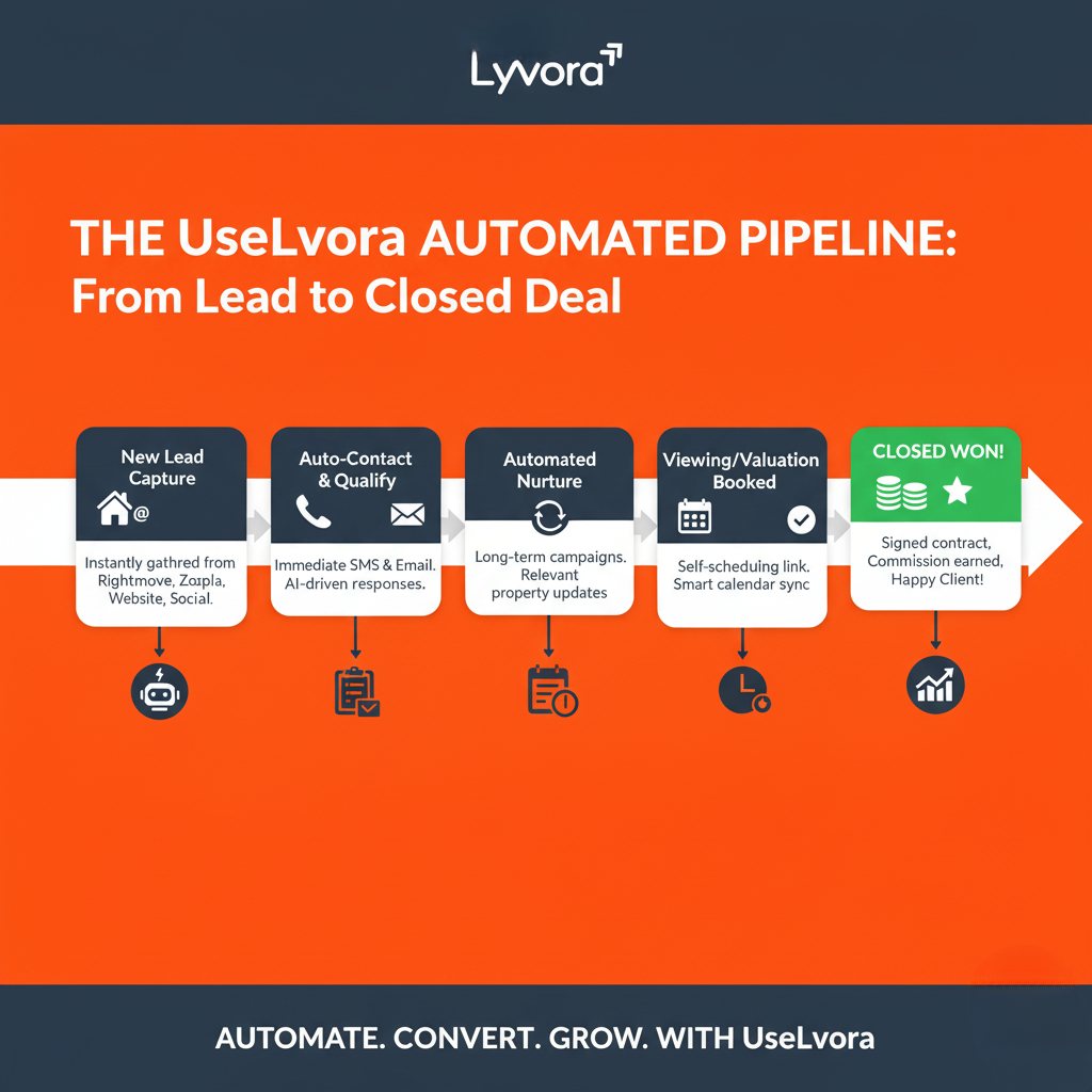 Our mission is to empower independent real estate agencies across the UK to eliminate operational chaos, increase profitability, and build scalable businesses through intelligent, Done-For-You automation. UseLyvora Real Estate Systems is an automation consultancy that leverages its proprietary all-in-one CRM and marketing automation platform to deliver transformative results. We do not simply sell software; we provide a high-touch, implementation-led service. Our model combines the power of a SaaS platform with the expertise of a consulting firm, ensuring our clients achieve a significant return on their investment by having a system that is custom-built for their specific needs. The average independent agency owner is an excellent estate agent but often an overwhelmed operator. They are trapped by manual processes and a patchwork of disconnected software, leading to critical business challenges: 1. Lead Leakage: High-value leads from portals (Rightmove, Zoopla) and websites are not followed up on instantly, resulting in lost commission. 2. Operational Inefficiency: Countless hours are wasted each week on repetitive admin tasks, manual data entry, and inconsistent client communication. 3. Lack of Scalability: The agency's growth is throttled by systems that rely entirely on manual effort, making it impossible to scale without adding significant headcount and complexity. The Service Includes: 1. Full System Implementation: We personally configure and implement our proprietary all-in-one platform to mirror and enhance the agency's sales and client management processes. 2. Automated Lead Capture & Response: We build automations that instantly capture every new lead from any source, assign it to an agent, and trigger immediate, multi-channel follow-up via SMS and email. 3. Client Nurture Sequences: We create "never go cold" campaigns to automatically nurture leads that aren't ready to transact, ensuring our clients stay top-of-mind. 4. Unified Pipeline & CRM: We migrate their contacts and build a clear, visual sales pipeline, giving the owner a single source of truth for their entire business. 5. Appointment Booking Automation: We implement a system that allows potential clients to book viewings or valuations directly into agents' calendars, eliminating back-and-forth communication. 6. Comprehensive Team Training: We provide hands-on training to ensure full adoption and confident use of the new system by the entire team. The Client Transformation: 1. Our service provides a clear ROI by helping agency owners: 2. Close More Deals: By converting leads that were previously lost. 3. Save 10+ Hours Per Week: By automating the administrative tasks they dislike. 4. Build a Scalable Asset: By creating a system that can handle growth without chaos. 5. Increase Gross Commission Income (GCI): Through improved efficiency and higher conversion rates.FAQ